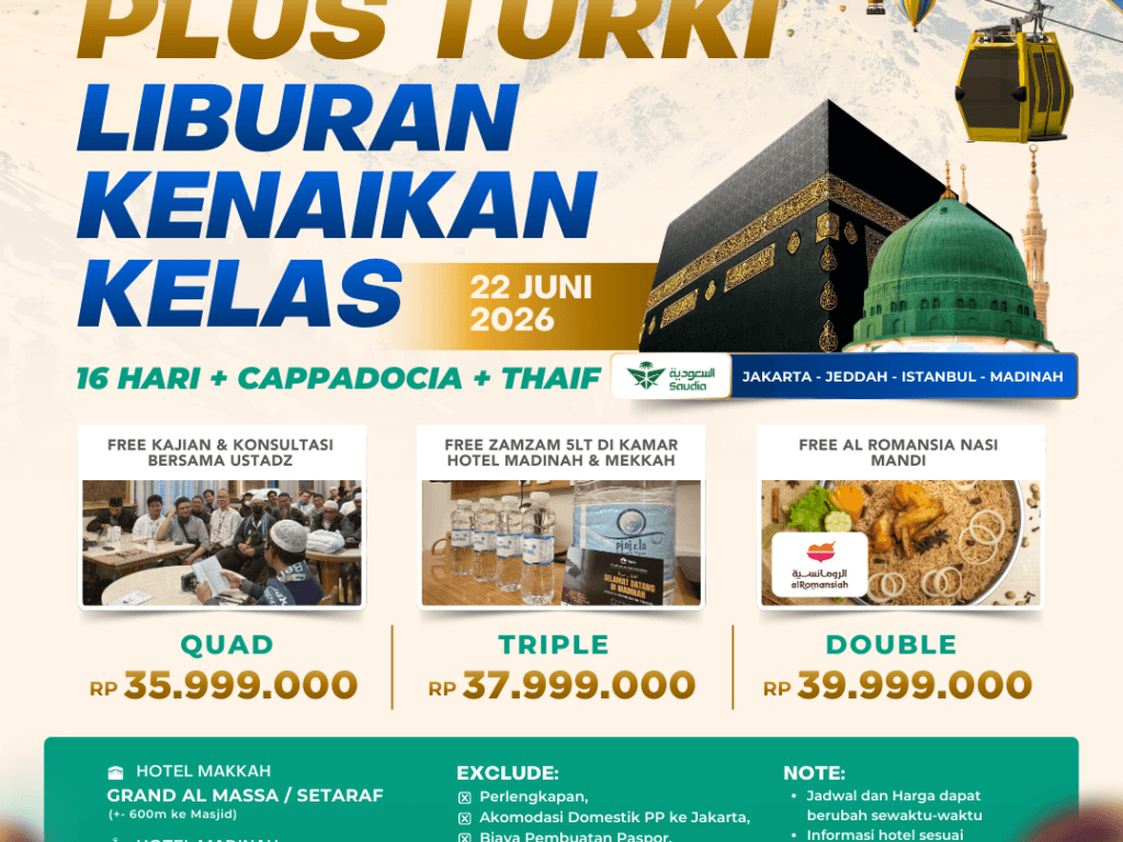 22 Juni 2026 (SV) ~ 16 Hari ~ Umroh Plus Turki + Cappadocia + Thaif + Romansia