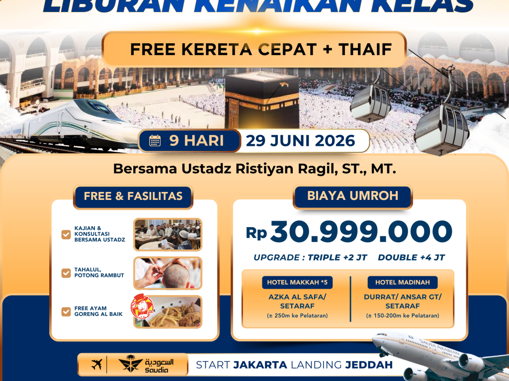 29 Juni 2026 (SV) ~ 9 Hari ~ Umroh Gold *5 Plus Thaif + Free Kereta Cepat