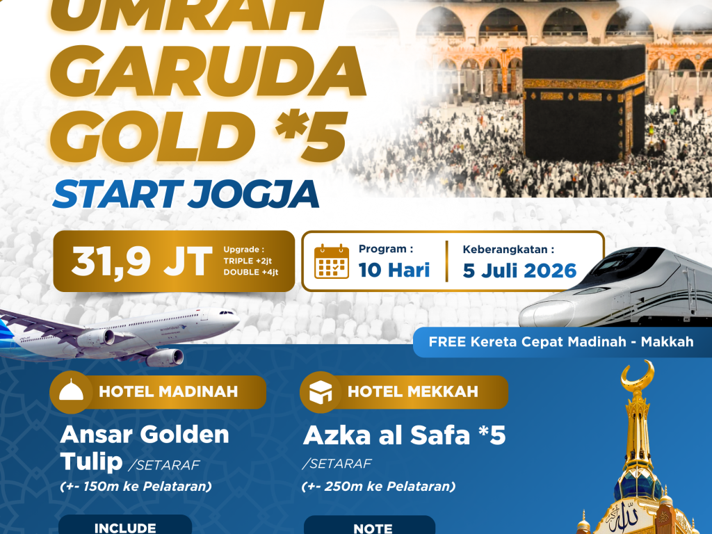 05 Juli 2026 (GA) ~ 10 Hari ~ Umroh Gold Start Jogja + Free Kereta Cepat