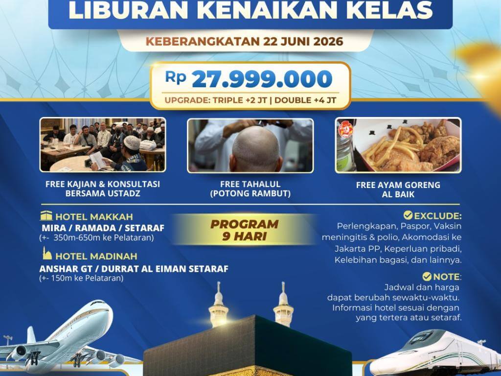 22 Juni 2026 (SV) ~ 9 Hari ~ Umroh Liburan Sekolah Plus Kereta Cepat +1jt