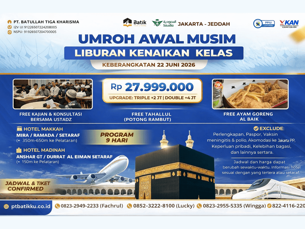 - Minimal keberangkatan grup peserta adalah 20 jamaah.